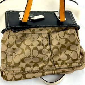 Coach Hamptons Classic Black and White Leather Hand Bag M3Q-9605 Zip Closure