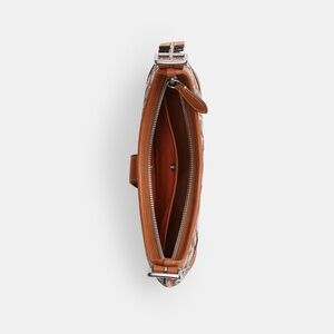 Signature jacquard and glovetanned leather One credit card slot Inside snap pocket Zip-top and dogleash clip closures fabric lining Adjustable handle with 10 drop 10 1/2 (L) x 8 1/2 (H) x 2 1/2 (W) Style No. CW654
