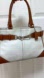 Coach Hamptons Leather Satchel White Leather Brown Trim with Front Clip Closure