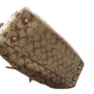 Coach Signature C Brown Hamptons Purse with Orange Leather, silver hardware
