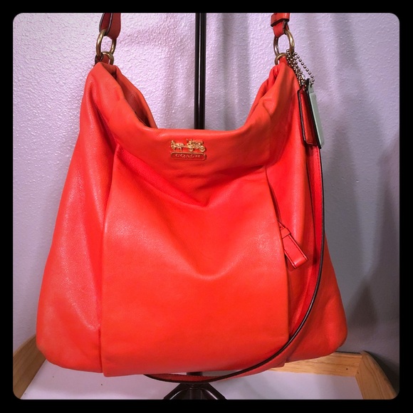 Coral Coach Handbag. Can be used as a crossbody. Adjustable strap and handle. Minimal wear. No rips or tears.