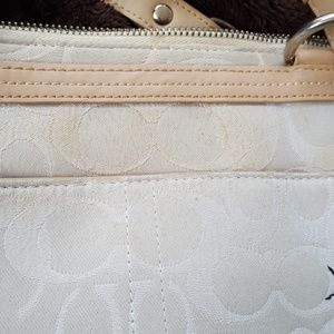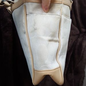 Vintage Cream Signature Coach Handbag with super cute Bumblebees. Has side pockets and a pocket on the front. Clean inside, has some signs of use on the outside.