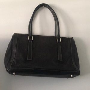 Black leather and canvas coach shoulder tote purse. Early 90s. Authentic. Minimal signs of wearing. Zipper closure and large zipper compartment.
