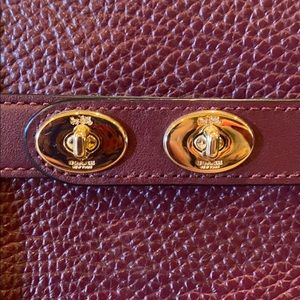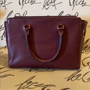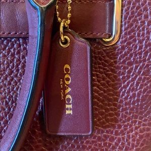 Burgundy pebbled leather coach handbag with gold accents. Closes with a gold zipper and internally has burgundy fabric with a big zip pocket to keep all of your items safe. The all burgundy color gives a sophisticated look, with the gold accents giving a pop of color to the bag. Never used, dustbag included. Same as the black matte bag but no tags, that’s the reason for the price reduction