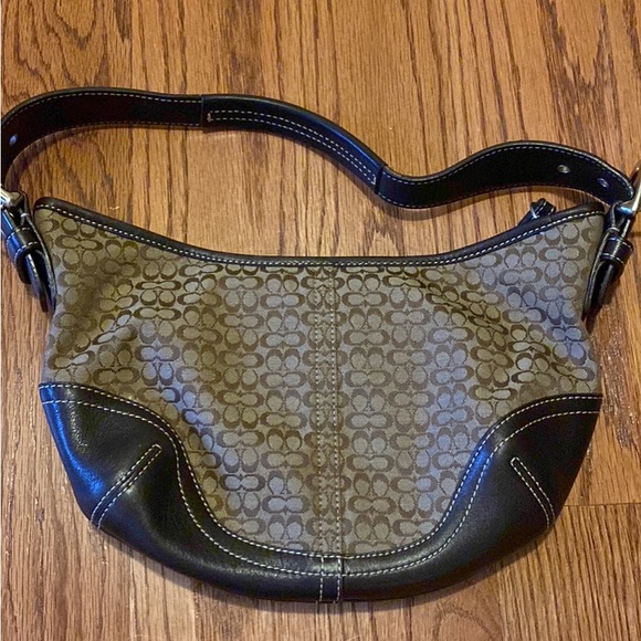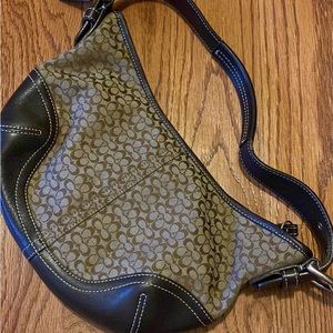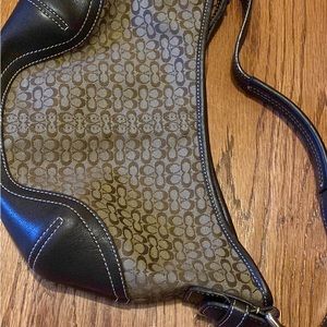 Signature authentic small Coach hobo bag. Brown leather canvas.