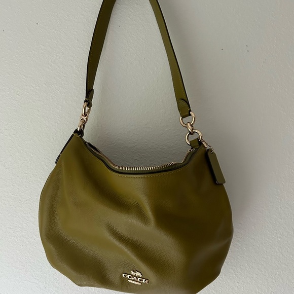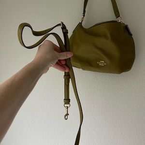 This is a green leather Coach bag. EUC, barely used. I am selling because I need a slightly bigger bag for everyday use. This purse features crossbody and shoulder strap. From a non-smoking home.