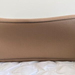 Coach Handbag. This handbag is in excellent used condition. There is minor color transfer markings (shown in the picture) on the back of the bag near the top. There is a minor indentation on the side of the bag (see picture.) The interior has no notable markings.