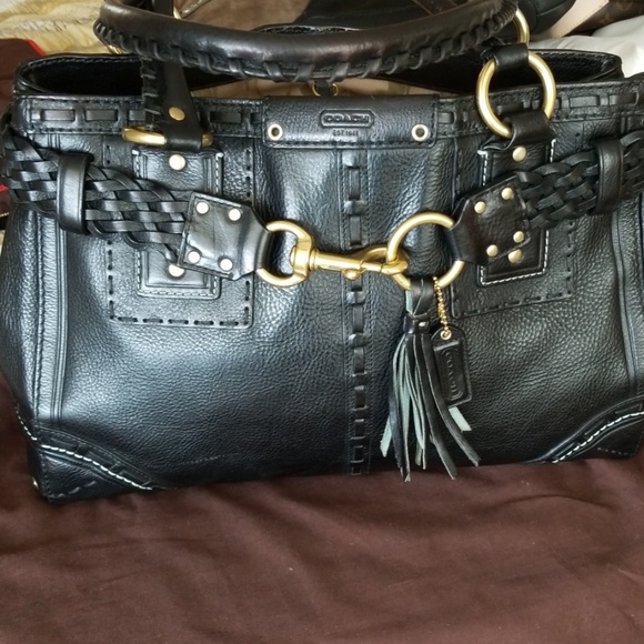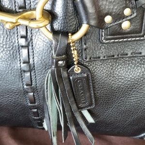 Fabulous Coach bag. Practically unused, no stains or flaws. Gorgeous brass hardware and details. Black leather with black and blue tassel accent. Make it your special bag.