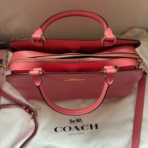 Salmon or Coral Colored Coach Crossbody bag.