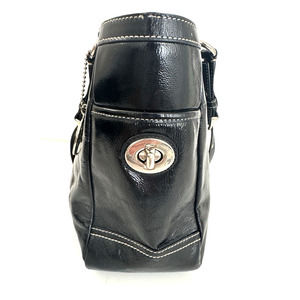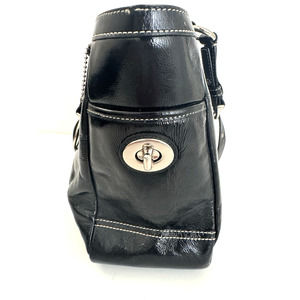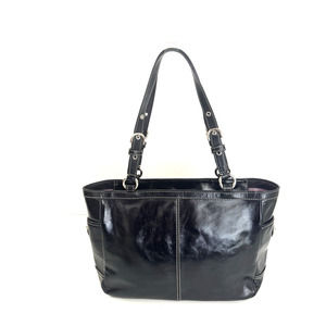 Coach Handbag Black Shiny Leather Tote Shoulder Bag Pleated Gallery Creed F13761