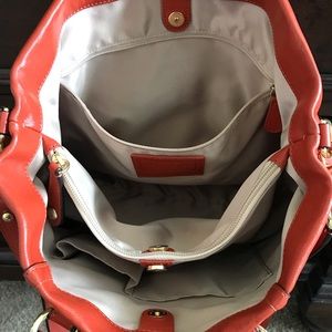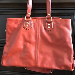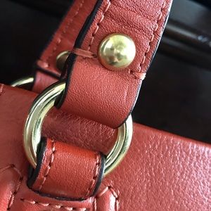 Coach handbag in sweet pumpkin spice leather 🎃 perfect for fall! Long, shoulder-carry handle is removable (not a crossbody). Gold-toned hardware. Never carried, in absolutely pristine, clean condition, from a pet-free & smoke-free home.