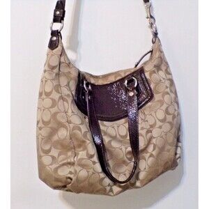 This Coach handbag in gold brown black is a stylish and versatile accessory for any occasion. With a large size and double handles, it is perfect for carrying all your essentials while on the go. The bag features a zip closure, logo pattern, and pleated accents, adding a touch of sophistication to your look. The interior is lined with a combination of canvas, leather, and fabric, providing durability and style. Perfect for travel, casual outings, formal events, workwear, or business meetings, this tote is a must-have for the modern woman.