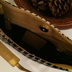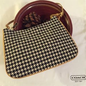 Coach Authentic Handbag • Houndstooth w/ Metallic Gold Leather Accents • 10"W x 7"H (Approx) • EUC
