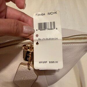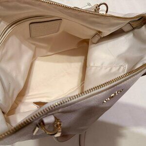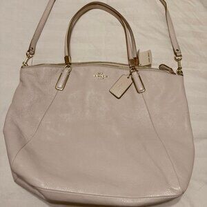 Kelsey Coach Pebbled Leather Satchel – Light Beige (Convertible Handbag / Crossbody)