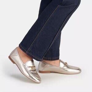 Coach Hanna Loafer Champagne and Gold Metallic Leather Shoes Size 8.5