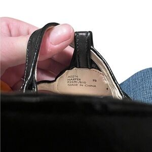 Coach Harper black leather sling back wedge sandals with silver hardware