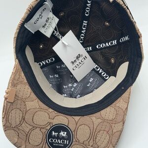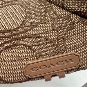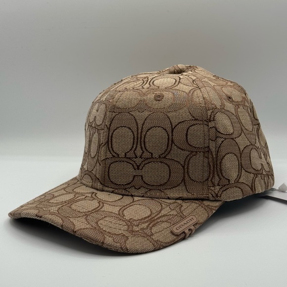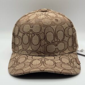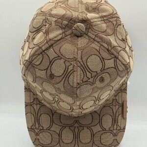 Outlet- Adjustable Coach baseball cap. Signature brown/tan. Cap size is medium. Unisex. Coach visor clip.