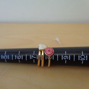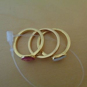 Coach Heart Signature C Band Stacked Rings 3-PC Set Gold Pink White Size…