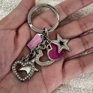 Coach Heart & Star Charm Keychain Silver Pink Rhinestone Bag Charm