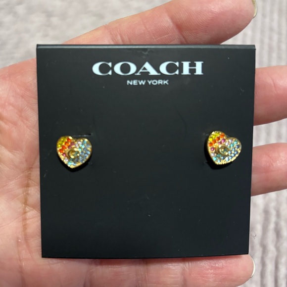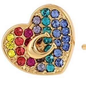Vibrant heart earrings with multicolor gems. Adds sparkle to any outfit.