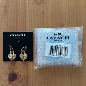 Coach Heart Turnlock Pavé Huggie Earrings (Gold/Pink Multi) - NWT