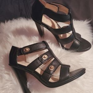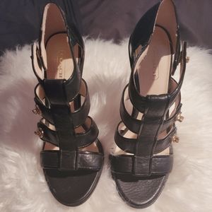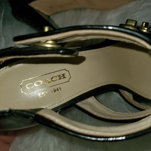 NWOB 4" Coach Heels "Tamara" Size 6.5 Black Patent Leather With Brass Gold Tone Turlock Accents