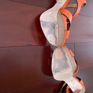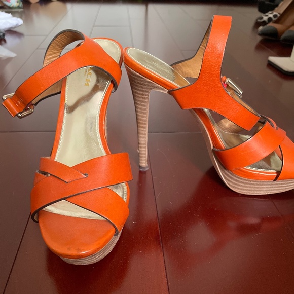 Orange coach leather platform sandals. Lightly worn
