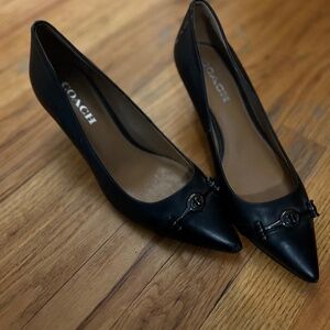 Like New- only worn a few times. Coach black leather heels with buckle.