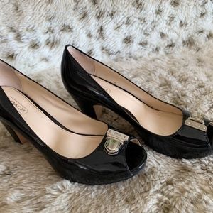 COACH HELAINE PATENT BLACK PATENT LEATHER PUMPS