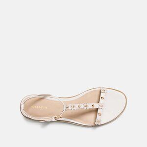 Coach Henriette Floral Rivets Flat Sandals | Chalk Leather with Die-Cut Appliqué