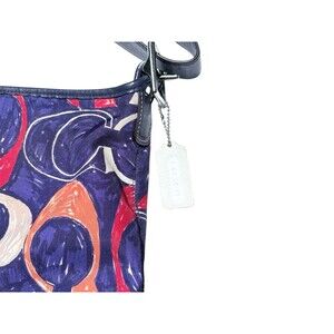 Coach Heritage C Print duffle bag with colorful leather trim. Spacious interior, signature C pattern, and soft leather details. Perfect as a daily carry, travel tote, or work bag.