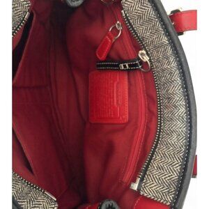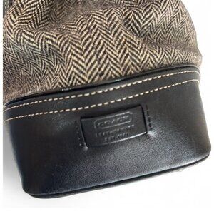 Coach Herringbone Tote Bag, Grey Wool & Black Leather, G04J-1408 Handbag