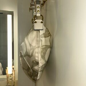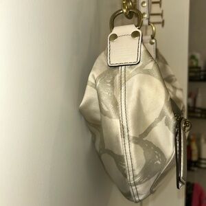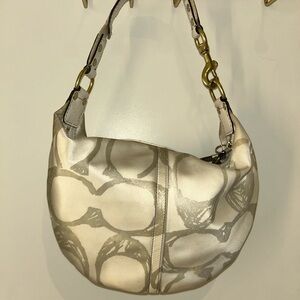 Coach white, silver and gold hobo bag with shimmery signatures C print, double hang tags, and no notable mark on interior or exterior!
