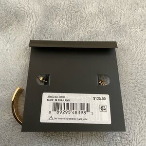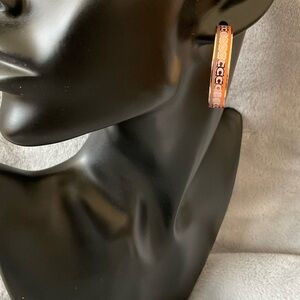 Coach Hoop Earrings in Goldtone with Orange & Brown Classic Coach C design. Measure approximately 1.3” Diameter with a 1.3” Drop and .25” Wide. Plated brass and enamel