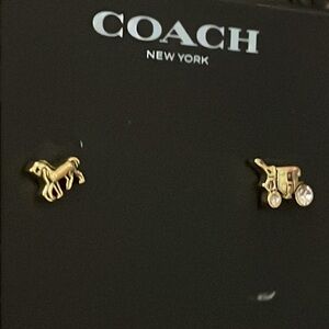 Coach Horse & Carriage mismatched stud gold tone earrings