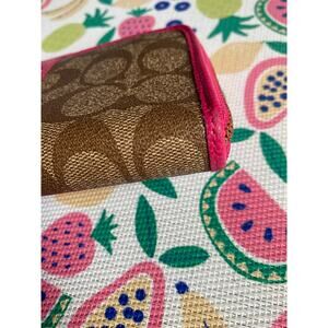 Coach Hot Pink and Brown Monogrammed Long Zip Wallet