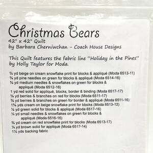 Coach House Designs Christmas Bears Quilt Pattern 42x42” Quilted Wall Hanging