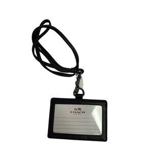 Coach ID Lanyard Charcoal Black Card Holder Signature Canvas Leather Trim NEW