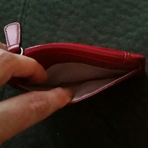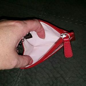 This is a beautiful red patent leather ID wallet in excellent condition! I used this once, however I have way too many cards and can't fit them in this!