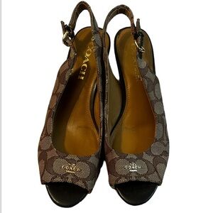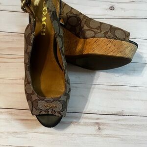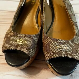 Coach Insignia Ferry Peep Toe Wedge Heels Shoes 6.5 Women