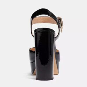 Keywords: Coach Isabella, Black platform heels, Patent leather shoes, Coach heels, Patent Leather Pumps, Size 7.5 heels, 5 inch heel, 1 inch platform, 4" heel, New heels, Coach designer shoes, Elegant black heels, Women's size 7.5, Fashionable platform shoes, High heel pumps, Stylish black heels, black pumps