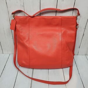 Coach Isabelle Pebbled Leather Hobo CrossBody Tote Purse Scout Burnt Orange READ