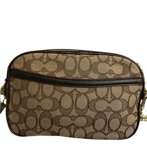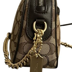 Coach Isla Chain Crossbody In Signature Jacquard in Khaki/Brown/Light Gold