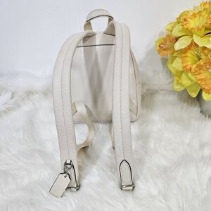 Chic ivory backpack with croc-embossed texture. Front pocket and secure zip closure. Perfect for any occasion.