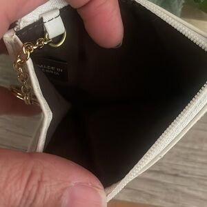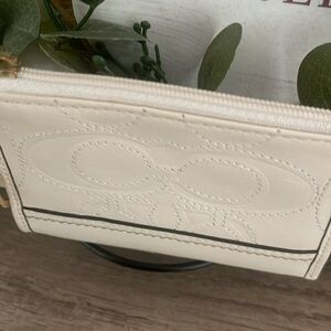 Stylish Coach holder in elegant ivory. Features secure key ring and card slots.
