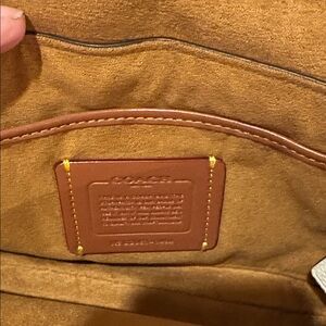 Chic Coach crossbody in ivory leather. Features gold-tone hardware and adjustable strap. Perfect for day or night.