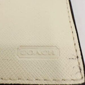 A sophisticated and versatile piece, this Coach ivory leather wallet is designed in a slim bifold silhouette that works perfectly for both men and women. Features genuine pebbled leather exterior, card/cash slots inside, and embossed Coach logo detail. A classic everyday essential that slips easily into a pocket, work bag, or evening clutch.
