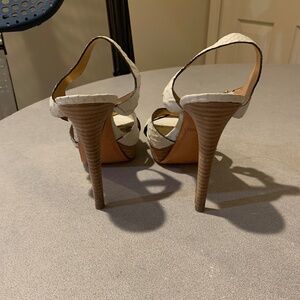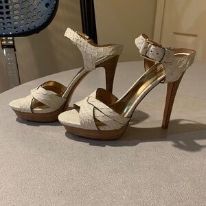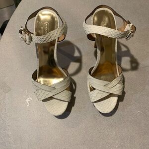 Coach Ivory Snakeprint Leather Platform High Sandals sz 8.5 B