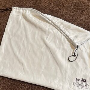 Off white satin bag with Coach emblem. Ideal for handbag storage.