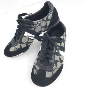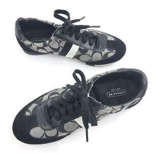 Coach JOSS Black Suede Gray Signature Monogram Canvas Lace Up Casual Sneakers